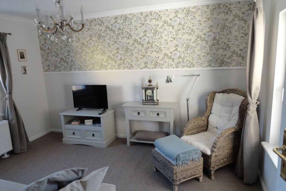 Die Cottage-Ferienwohnung verbindet antiken Landhaus-Charme mit modernem Komfort und bietet einen herrlichen Seeblick. Im Erdgeschoss befinden sich eine gemütliche Küche mit Essbereich sowie ein Badezimmer mit einer großzügigen Dusche.