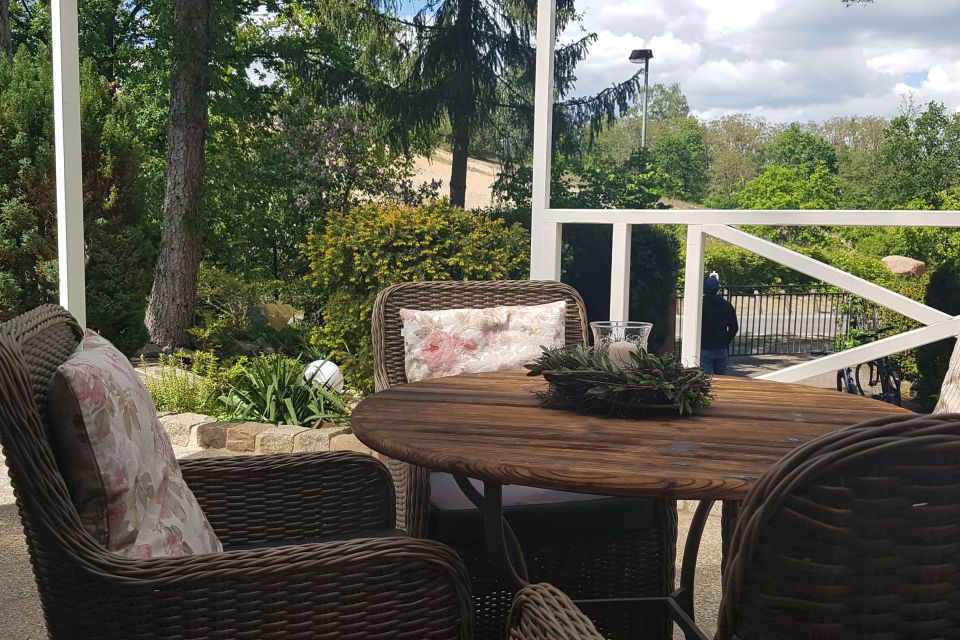 Entspannung drinnen wie draußen - Die große, überdachte Terrasse mit Sitzgruppe, Liegestühlen und einem Freiluftbett lädt auch bei Regen zum gemütlichen Faulenzen ein.